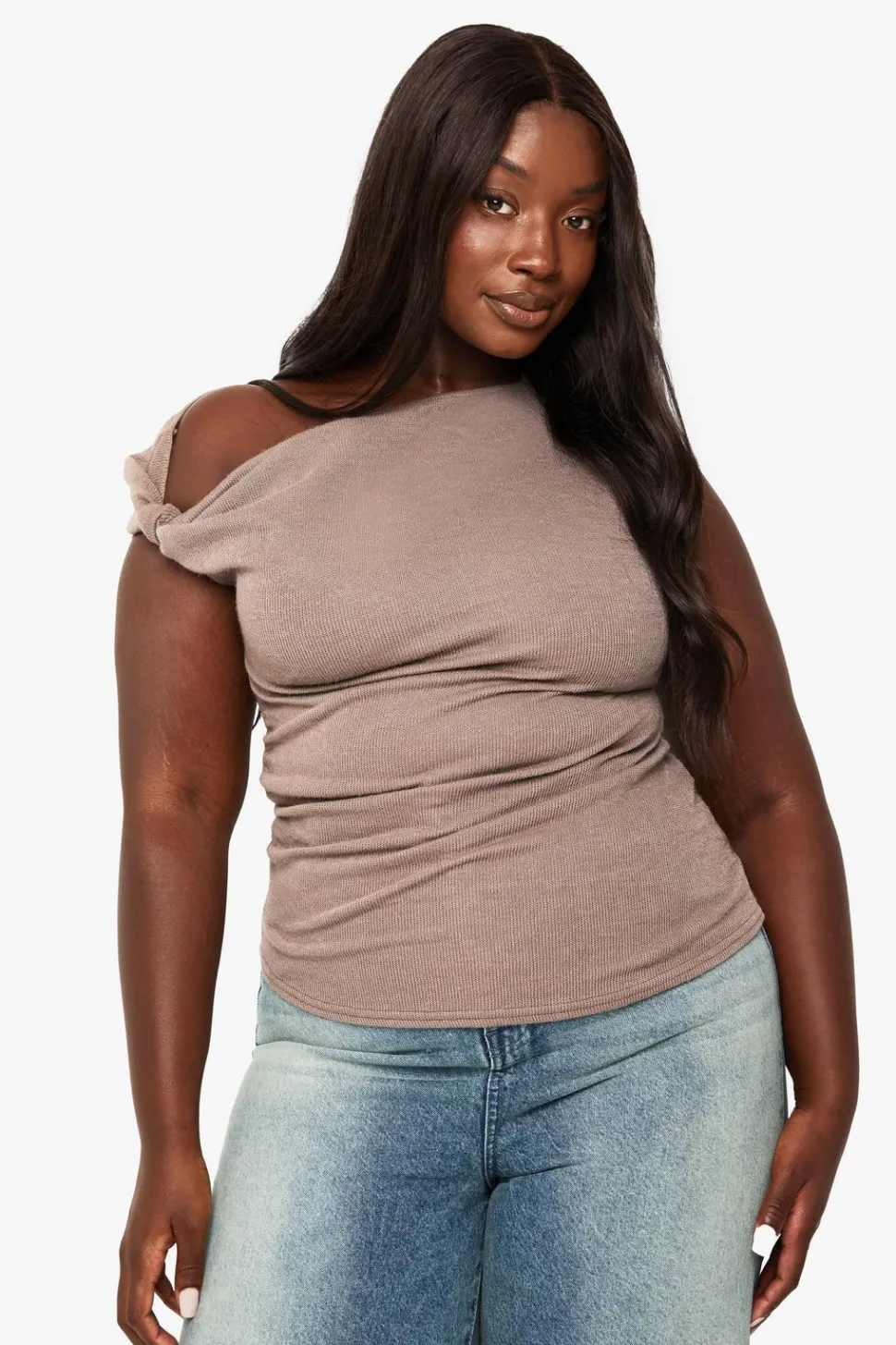 PLUS KNOT SHOULDER DETAIL ASYMMETRIC TOP | Nasty Gal
