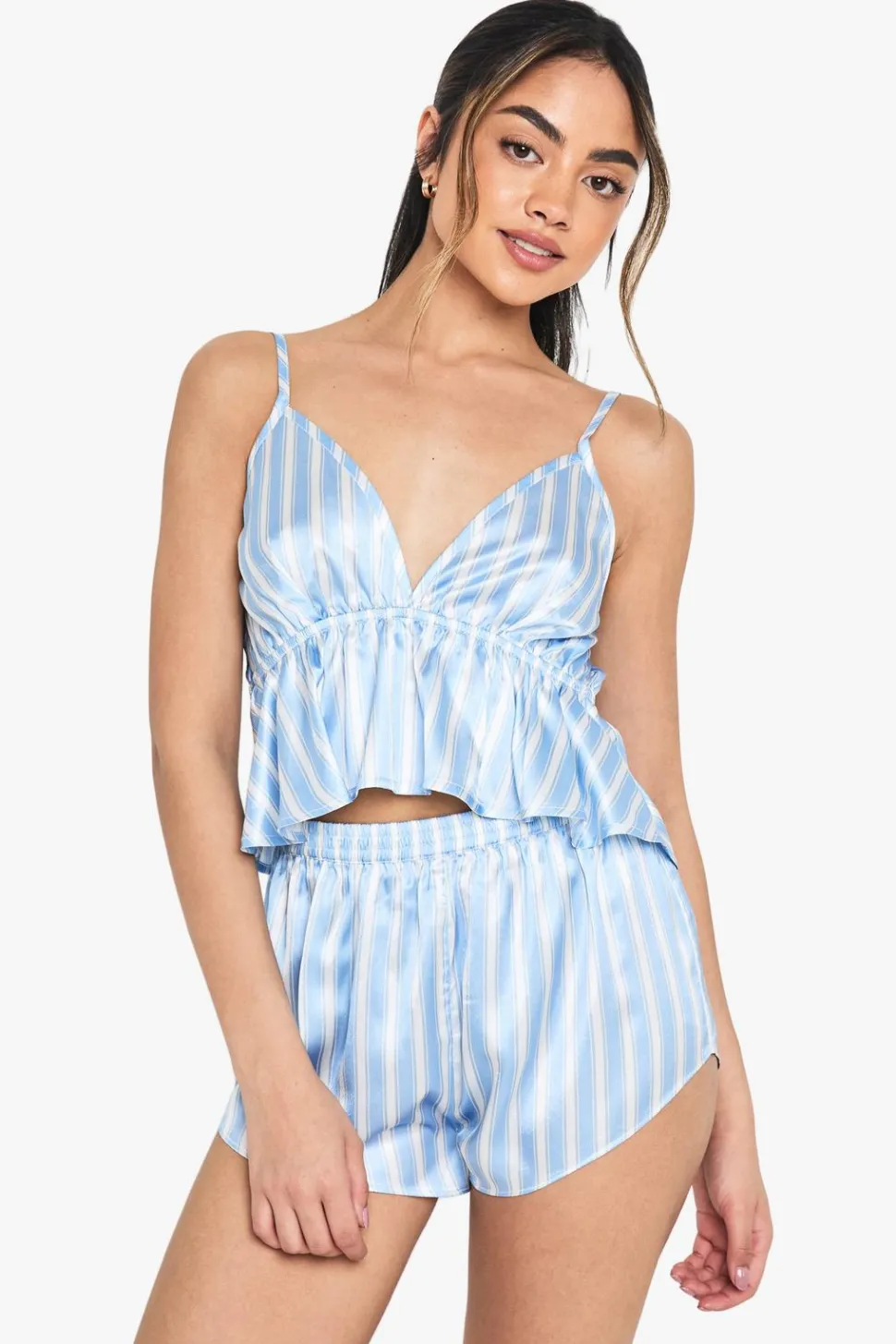 Stripe Satin Cami Top & Shorts Pyjama Set | Nasty Gal