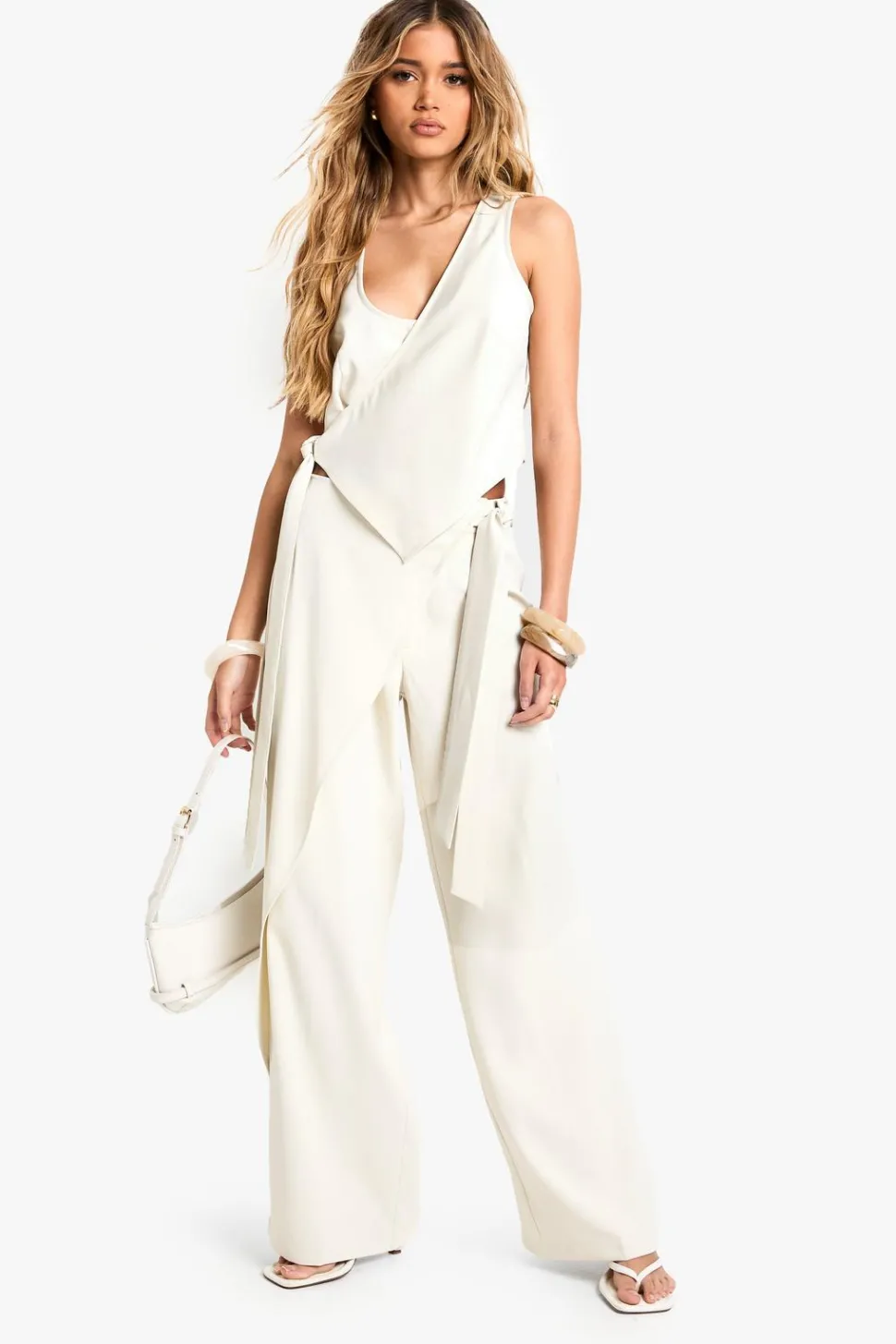 Tailored Wrap Tie Detail Wide Leg Trouser | Nasty Gal